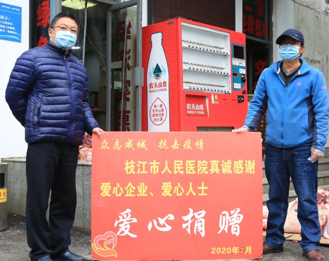 枝江市人民医院副院长张明红代表医护人员收下这份沉甸甸的心意后说:“谢谢你们的‘爱心牛肉’,一定将你们的祝福转达给奋战在一线的全体医护人员。”