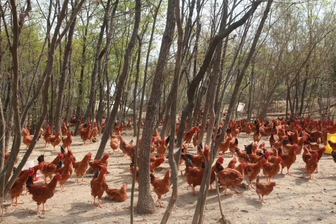 来到养殖大户袁建华的养殖基地,只见一大片郁郁葱葱的山林里,成群结队的鸡群或飞到树干上,或相互追逐,或撒欢觅食,个个精神抖擞。