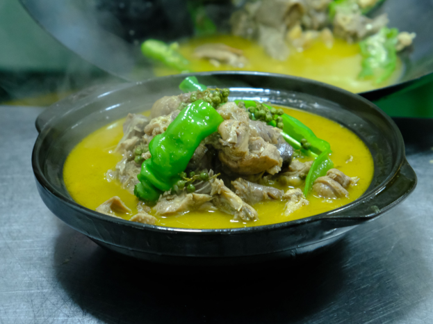 熊江山说:“双莲鸡主要是肉质鲜美、劲道,我们在烹调的过程中主要的调料就是姜、大葱、鲜花椒和青椒,再就是最后在里面放一点点鸡精。”
