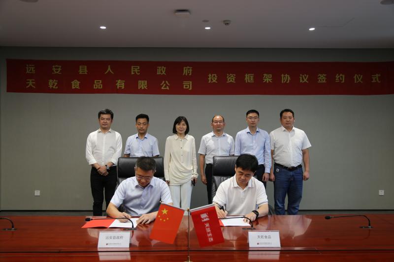 6月27日,远安县人民政府与天乾食品有限公司在上海天域生态环境股份有限公司签约《天乾食品生猪繁育基地项目投资框架协议》。