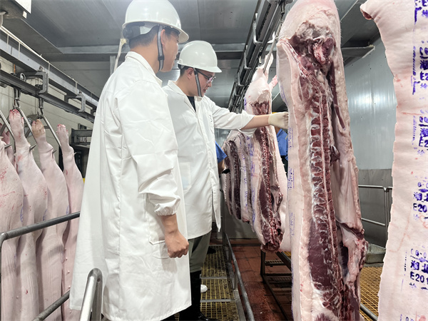 检查人员在现场检查的同时,就严格落实畜产品质量安全和安全生产提出了相关要求。一是驻场官方兽医要认真履职尽责,严守畜禽屠宰检疫重要关口,确保屠宰上市“放心肉”。二是屠宰企业要切实履行产品质量安全和生产安全主体责任,增强安全生产意识,提高安全生产能力,确保安全生产“零事故”。三是屠宰企业要落实非洲猪瘟防控主体责任,按照“批批检、全覆盖”的要求落实非洲猪瘟自检,同时加强生猪运输车辆、屠宰环境和车间消毒。