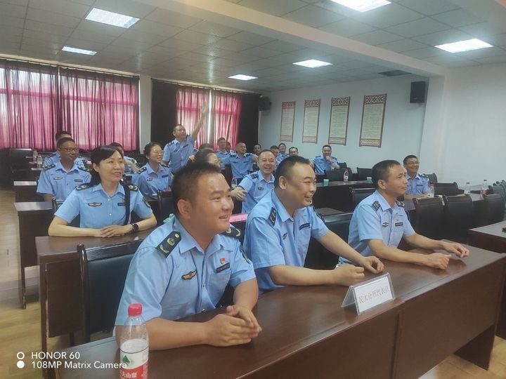 廉政知识竞赛后,开展了7月支部主题党日,支部书记、大队长陈佩文同志为大家上了题为“崇廉善法 做护农铁军”的廉政党课。