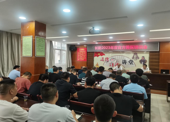 为加强长阳官方兽医队伍建设,提升兽医队伍依法履职能力和业务水平,2023年9月7日,长阳土家族自治县动物卫生监督所举办了一期官方兽医培训,全县50多名官方兽医参加了培训。本次培训以加快培养一支业务精湛、作风优良、纪律严明、保障有力的官方兽医队伍为目的,以提高兽医业务能力和综合素质为重点,旨在要求官方兽医依法依规开展检疫检验工作。