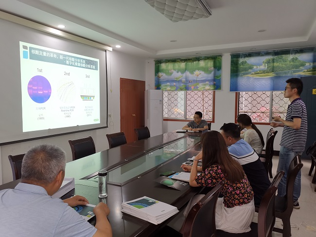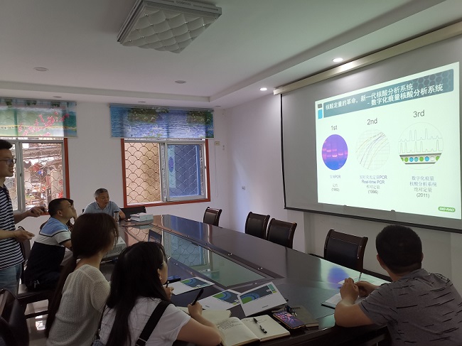 为提升市动物疫病预防控制中心实验室检验检测能力和水平,2021年5月11日,市动物疫病预防控制中心邀请武汉博时科技发展有限公司工程师蔡鑫为中心实验室工作人员进行了微滴式数字PCR与痕量病原检测技术培训。培训内容包含PCR技术的迭代发展、微滴式数字PCR技术原理及操作流程、微滴式数字PCR自身优势特点、该技术的应用领域等,内容讲解结束后,参与人员积极发言提问,与工程师充分沟通交流。