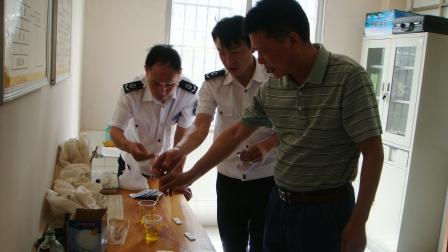 在对夷陵区检查结束后,张鄂中等不顾检查疲劳,冒着正午酷热天气,驱车赶赴当阳。在即将到达当阳时通知当阳市畜牧兽医局安排检查屠宰场和生猪养殖场。检查组先后随机检查了当阳市城东屠场和当阳市玉泉办事处曹武等规模养殖场(户),同样现场抽取了10份生猪尿样进行了检测,检测结果全部合格。在检查活动中,张鄂中副局长要求各县市区针对畜产品质量安全监管要重点抓好四个方面的工作:一是要进一步加大畜禽养殖、加工、流通和投入品经营等环节的监管力度,不留监管死角;二是要进一步加大畜产品抽样监测力度,每个县市区要确保全年完成600个畜产品质量抽样检测任务,确保畜产品质量安全;三是要进一步加大产地检疫工作力度,规范检疫申报点建设,确保新的动物检疫票证管理制度的顺利实施。四是要进一步加强对“瘦肉精”专项整治工作的领导,加大宣传工作力度。当前,要特别抓好湖北省畜牧兽医局《严禁使用“瘦肉精”等违禁物告知书》的张贴任务,切实做到村村贴、场场贴、户户贴。
