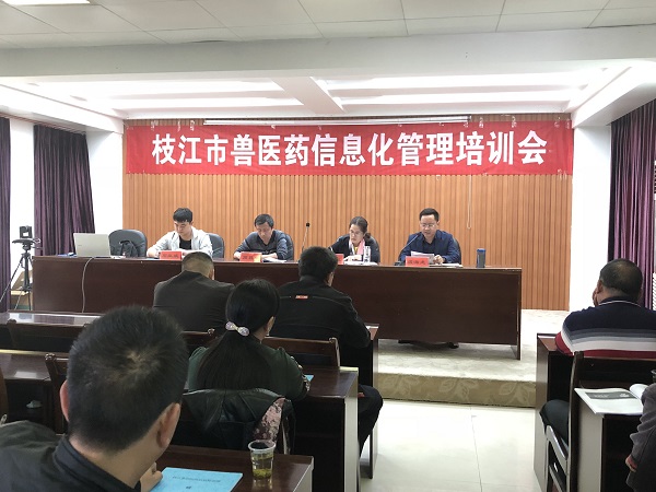 本次培训邀请宜昌畜牧兽医中心专家、武汉至为科技有限公司技术人员和枝江市畜牧兽医局技术骨干进行授课,授课主要内容为兽医政药政法律法规政策、兽药GSP规范及网上申报程序、楚天兽医药服务平台操作与使用等。培训旨在进一步增强兽药经营、使用业主的自律诚信意识、质量安全意识和遵纪守法意识,通过推广兽医药监管APP,实行兽医药信息化管理,全面建成兽药产品可追溯体系,提升枝江市兽医药相关行业的水平。