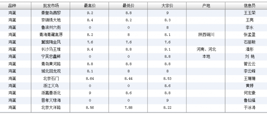2015-08-17农业部:全国鸡蛋批发价格汇总