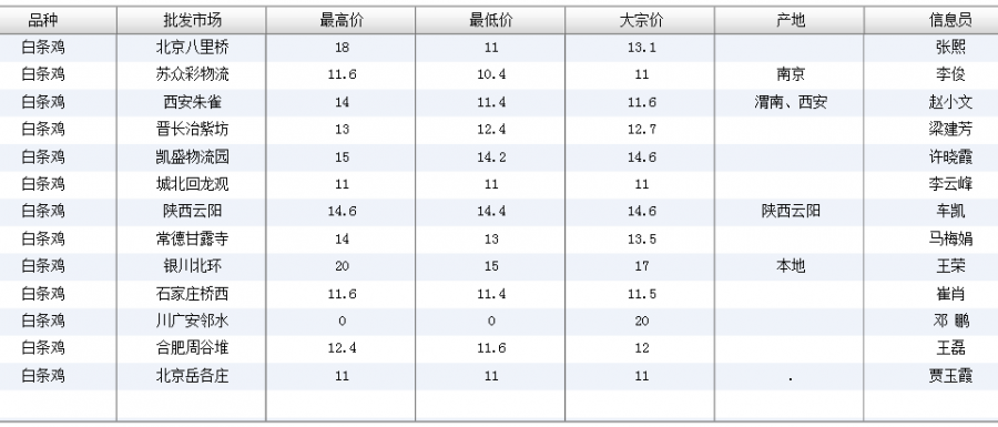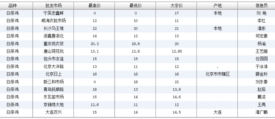 2015-08-21农业部:全国白条鸡批发价格汇总