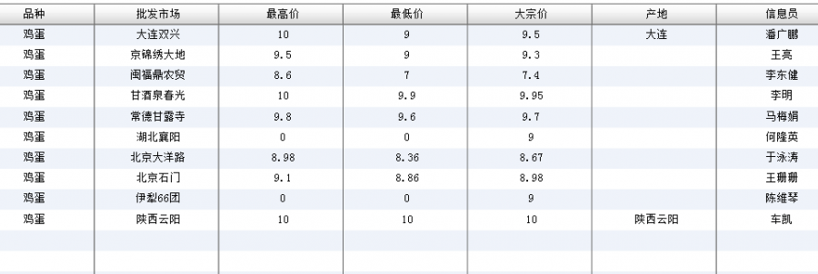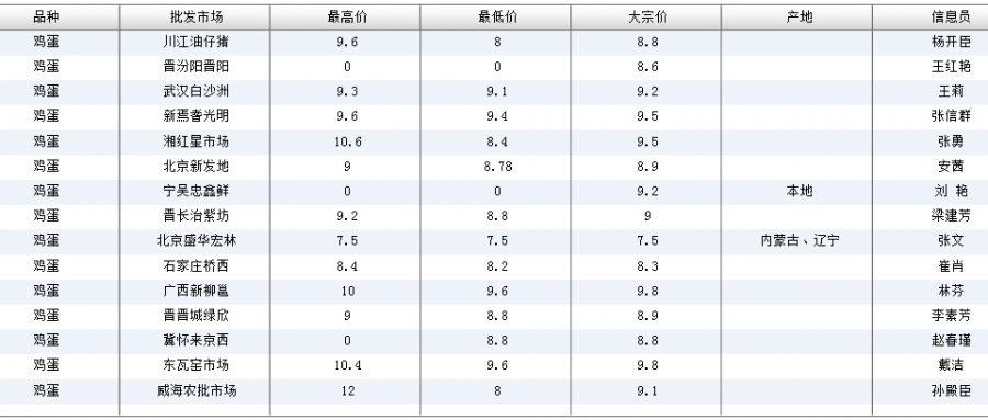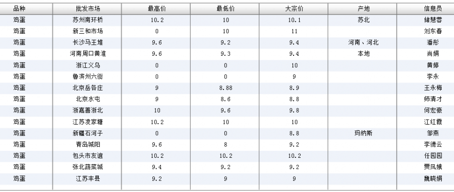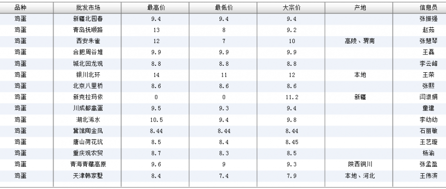 2015-09-06农业部:全国鸡蛋批发价格汇总
