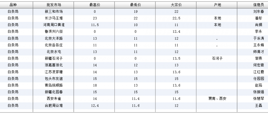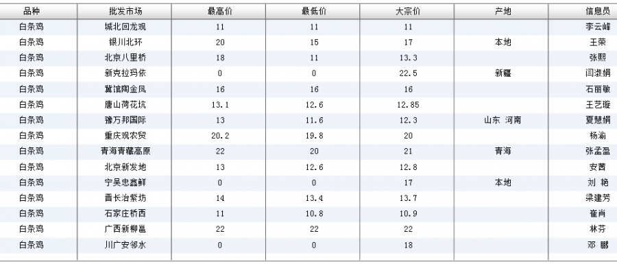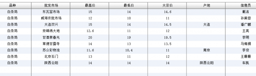 2015-09-06农业部:全国白条鸡批发价格汇总