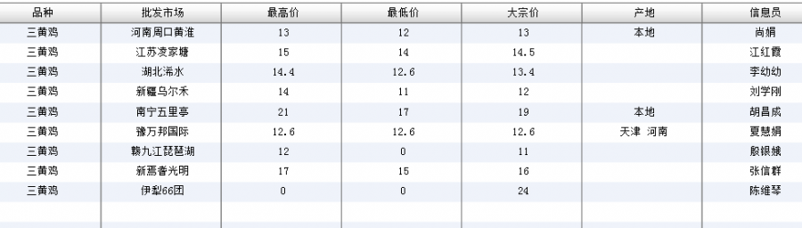 2015-09-06农业部:全国三黄鸡批发价格汇总